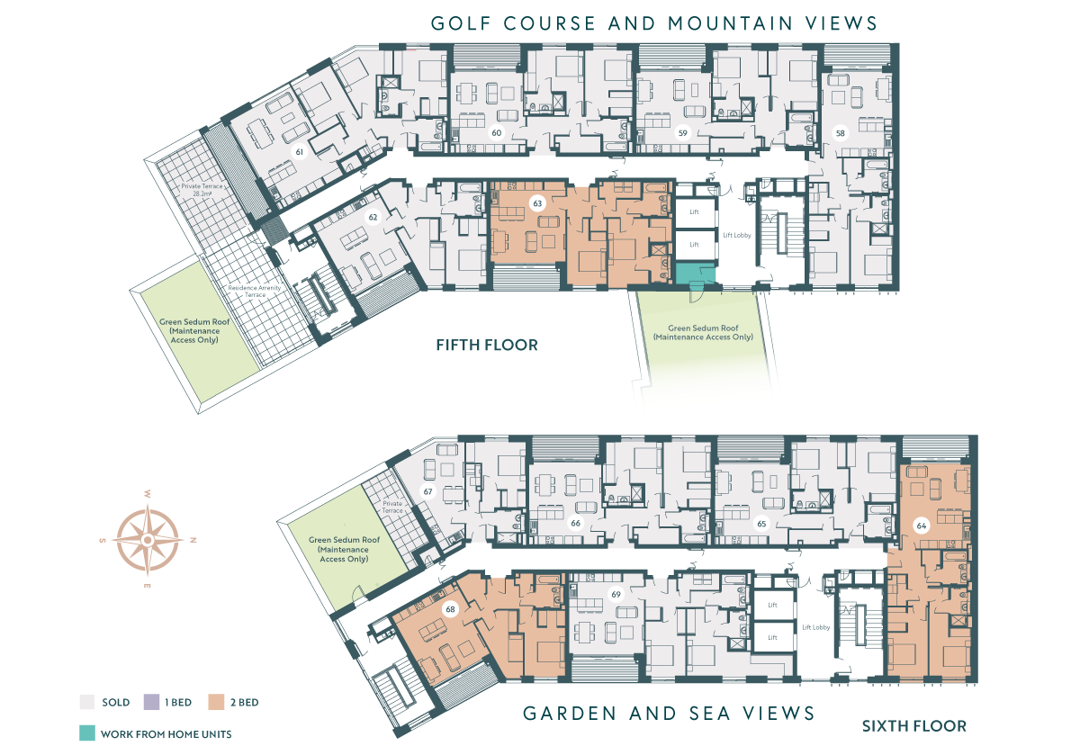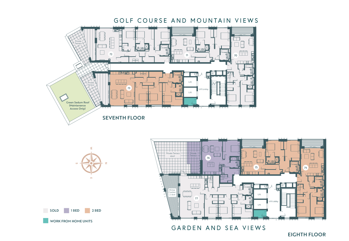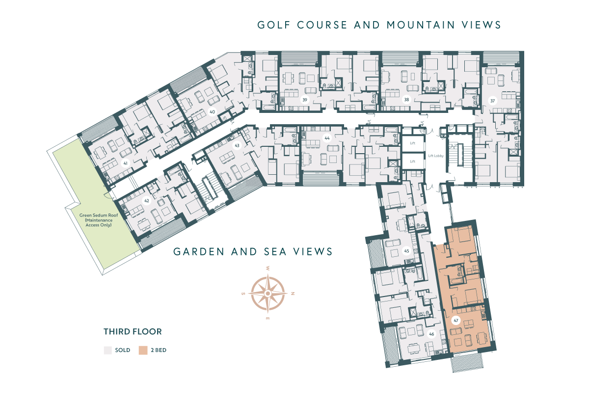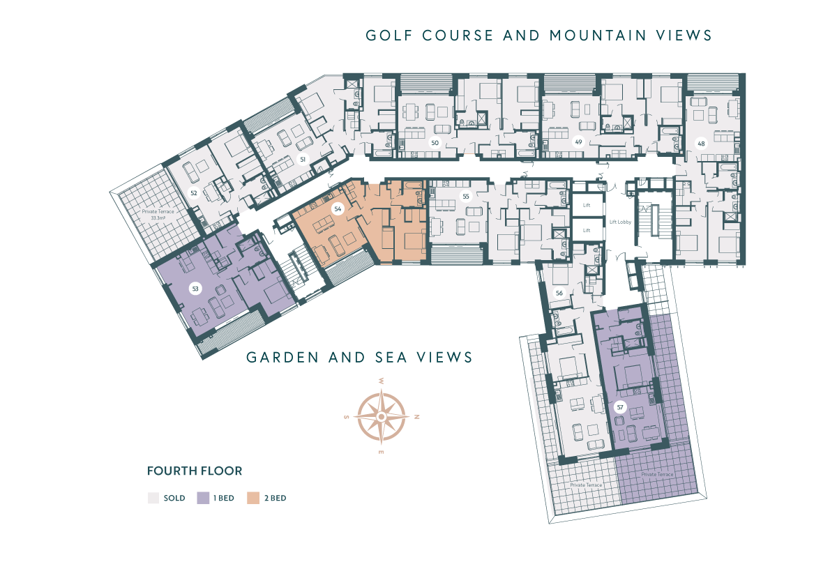 Every home is bright and spacious, and flooded with natural light thanks to the large windows. Many apartments also benefit from panoramic views over the coast, the mountains and surrounding golf courses.